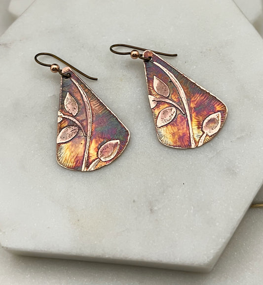 Acid etched copper earrings with amethyst gemstones