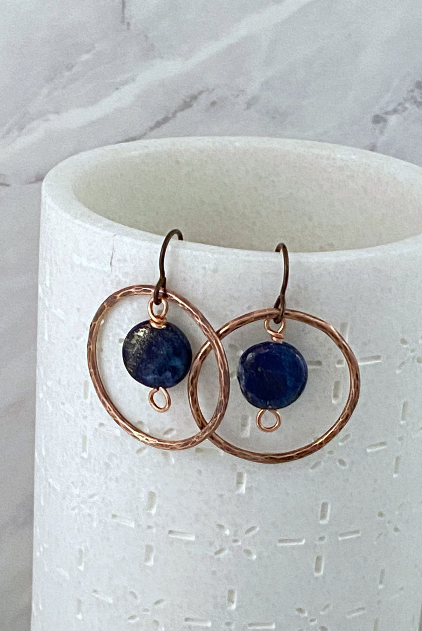 Copper and lapis hoop earrings