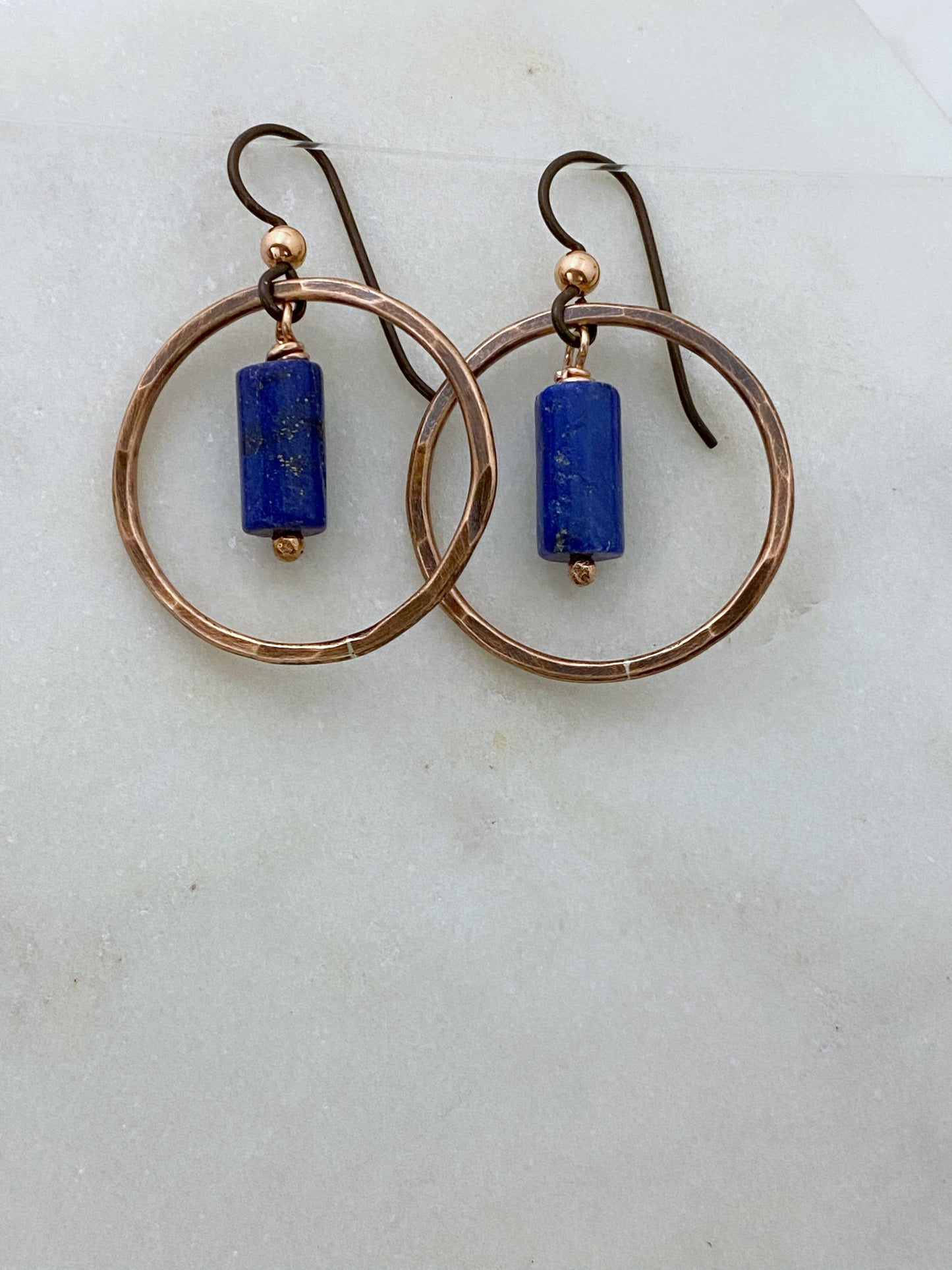 Copper hoop earrings with lapis gemstone