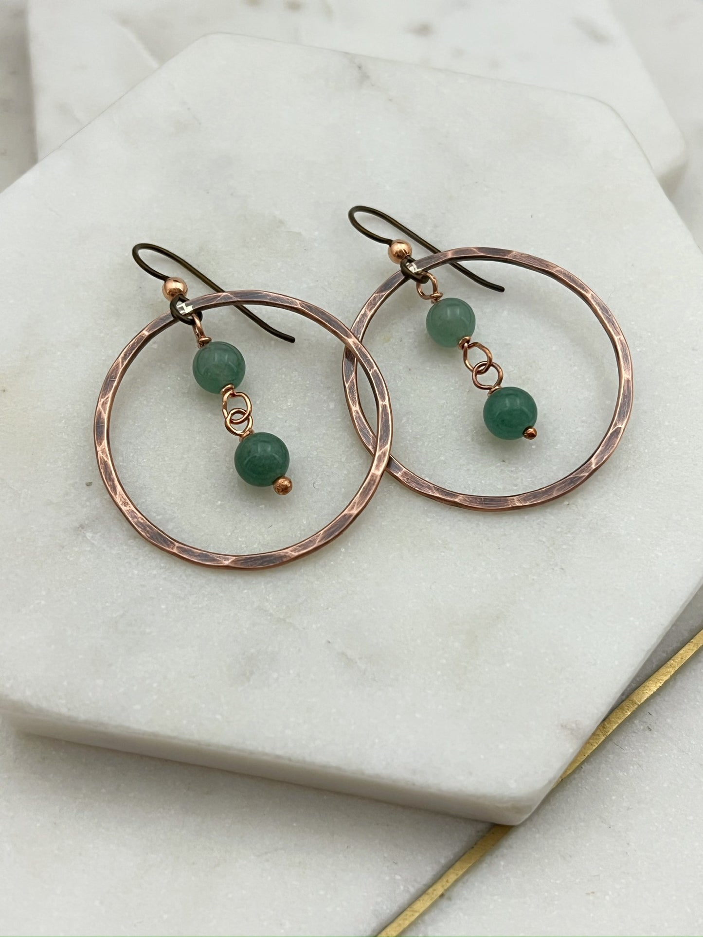 Copper oval hoops with aventurine gemstones