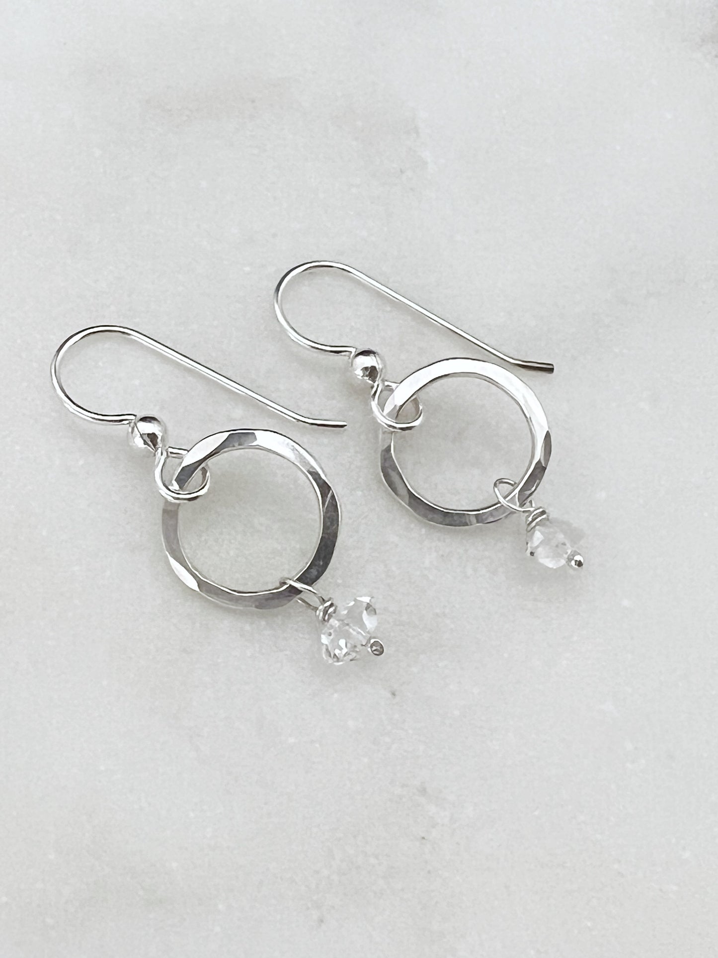 Sterling silver hoop earrings with Herkimer Diamond gemstones